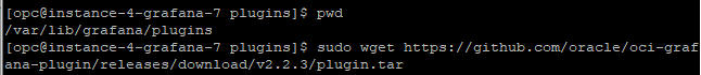 cmd is wget https://github.com/oracle/oci-grafana-plugin/releases/download/v2.2.3/plugin.tar