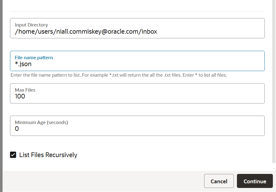 OIC comes with it's own sftp conform file server and this action makes it very easy for you to interact with it. You could, of course, use the OIC FTP adapter to do this, but why make more work for yourself? Some setup is required for this to work, that is discussed in a previous post.Let's check out which folders I have -